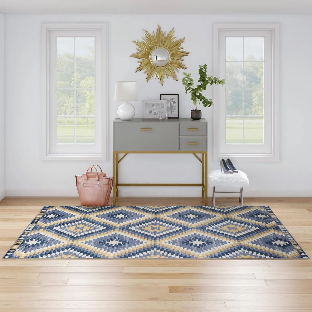 We like to think blue-and-yellow strikes the perfect balance between masculine and feminine. And what better to achieve that balance than the Heron rug – the prize of the Soleil collection from CosmoLiving. We say this bold, tribal-inspired rug’s on point and we’re obsessorizing with it right here, right now. Plus, it’s totally durable for daily wear at home.