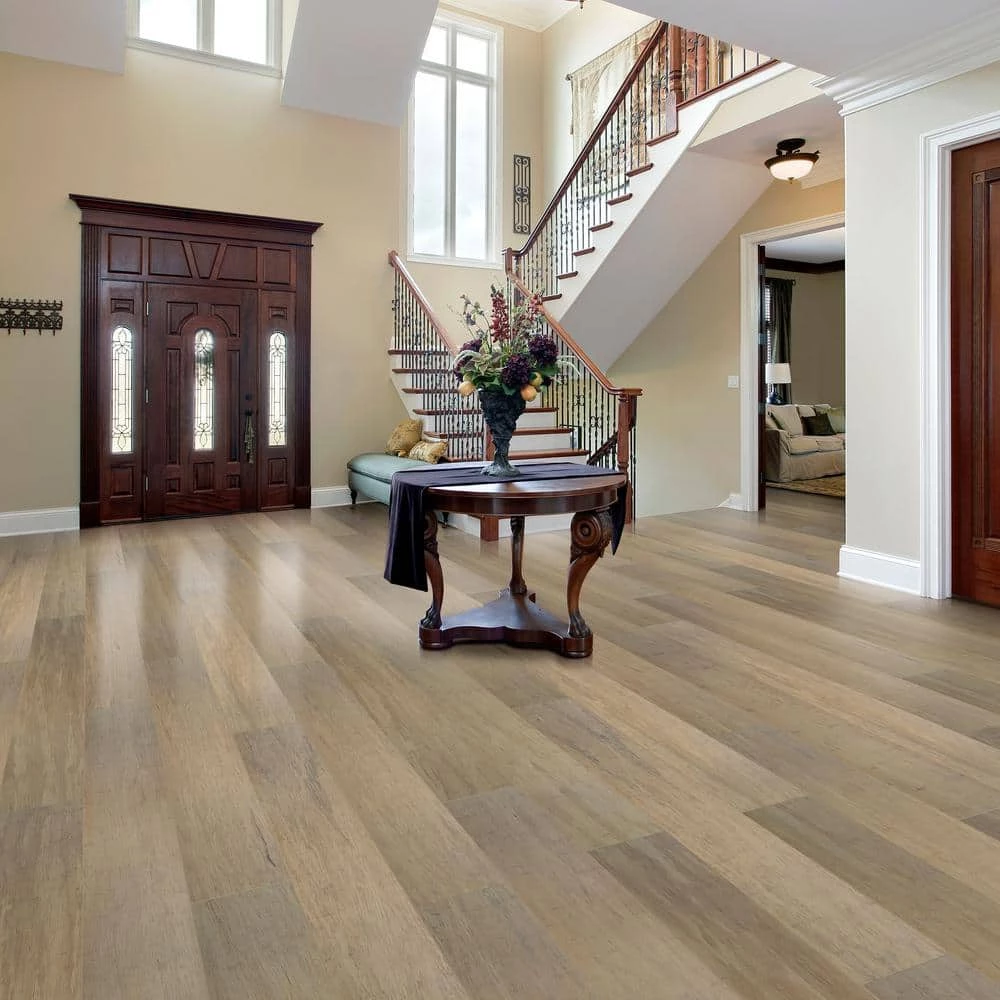 - Construction: Stone Polymer Composite (SPC) water resistant engineered bamboo flooring