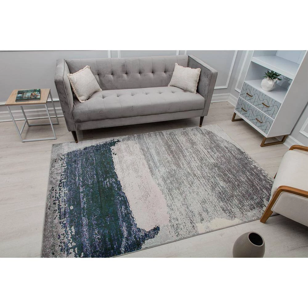 Transforming modern art from wall to floor, this area rug features an assemblance of long brush strokes anchored in hues of smoky gray and deep navy. Elegant and contemporary, this rug grounds the room with its lyrically abstract pattern and a muted yet decor-friendly palette. This piece creates an artfully balanced conceptual pattern that is bold yet sophisticated. Not only does this rug incorporate charm and style to your space but adds a lavish layer between your feet and the floor.