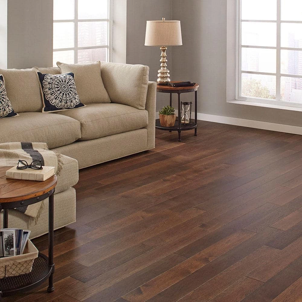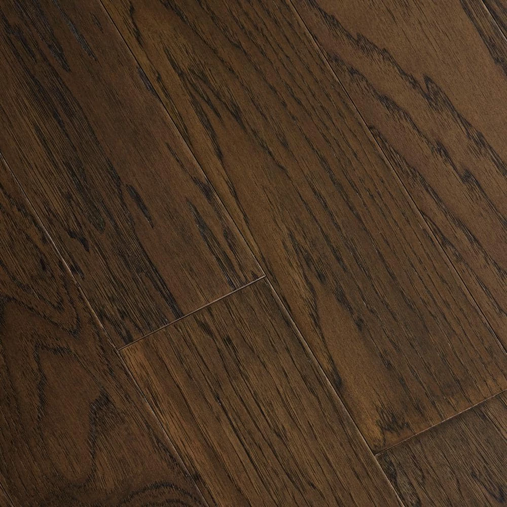 - Prefinished Ashor Hickory, dark color, wire brushed finish