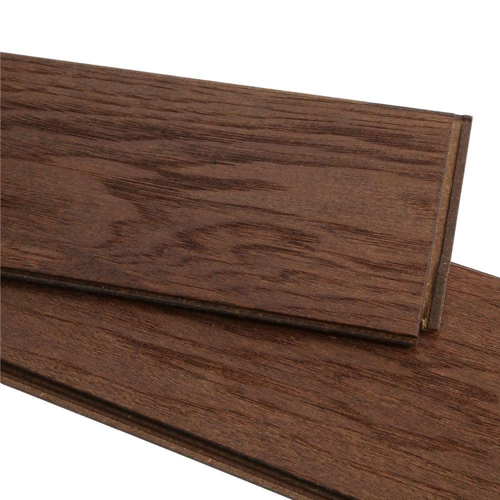 Wire Brushed 3/8 in. High Density Fiberboard (HDF) Click Lock Hardwood floors are sealed with a 7-layer aluminum oxide finish, providing protection from everyday wear. This product has achieved GREENGUARD Indoor Air Quality Certification and has been tested for more than 10,000 volatile organic compounds, including formaldehyde, to meet these standards. The glue less installation is easy and economical; above grade, on grade and below grade. Wire Brushed flooring is sculpted by hand to create vivid texture and unique richness of characteristics in each plank. The elegance and look of the floor will create a beautiful illusion in your home.
